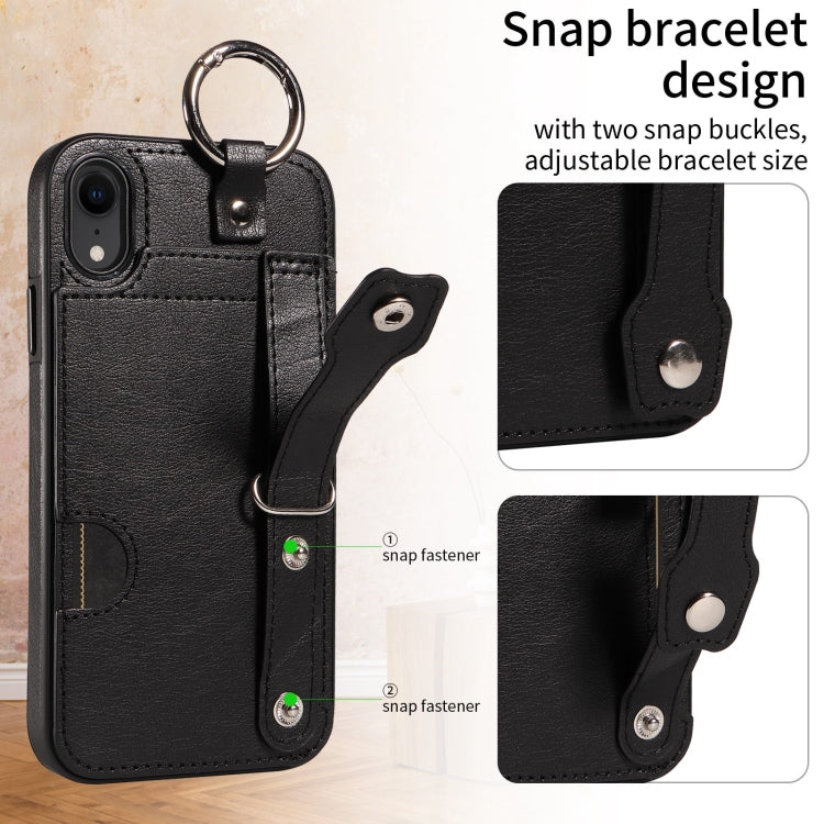 Funda para Teléfono iPhone Xr con Anillo y Ranura para Tarjeta Textura de Pantorrilla (Negro)