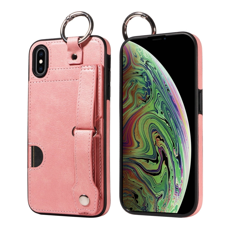 Funda para Teléfono iPhone X Xs con Anillo y Ranura para Tarjeta Textura de Pantorrilla (Rosa)