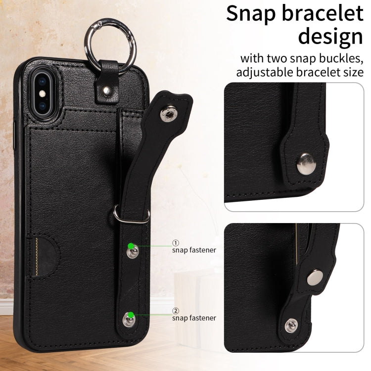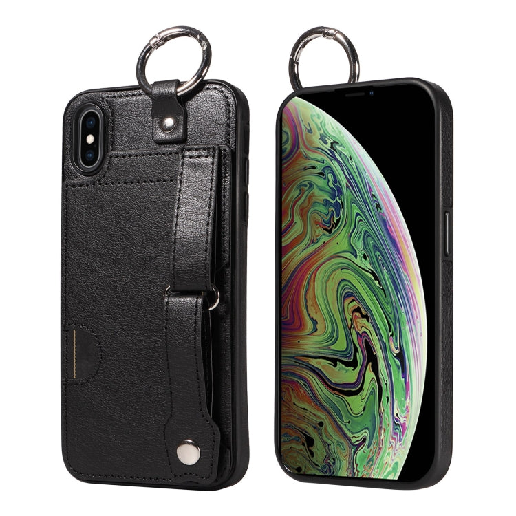 Funda para teléfono iPhone X / Xs con anillo y ranura para tarjeta con textura de pantorrilla (Negro)