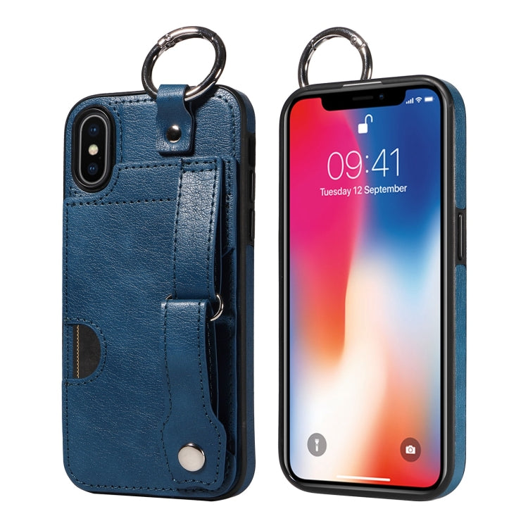 Funda para Teléfono iPhone X Xs con Anillo y Ranura para Tarjeta Textura de Pantorrilla (Azul)