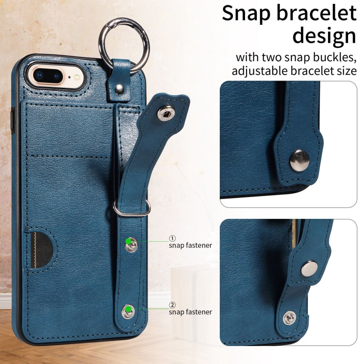 Funda para Teléfono iPhone 7 Plus/8 Plus con Anillo y Ranura para Tarjeta en la Muñeca (Azul)