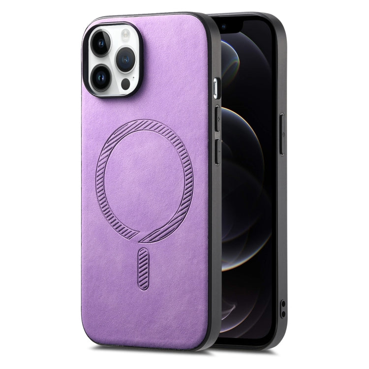 Funda para Teléfono iPhone 12 con Contraportada de PU Magsafe Retro (Púrpura)