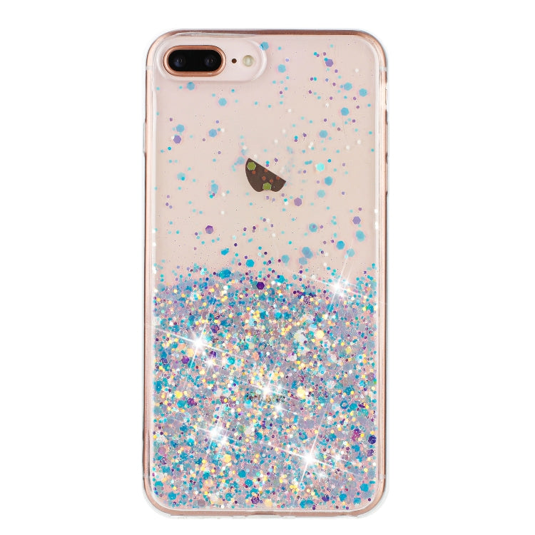 Funda TPU con Marco Transparente y Polvo Brillante Noctilucente para iPhone 8/7 (Azul)