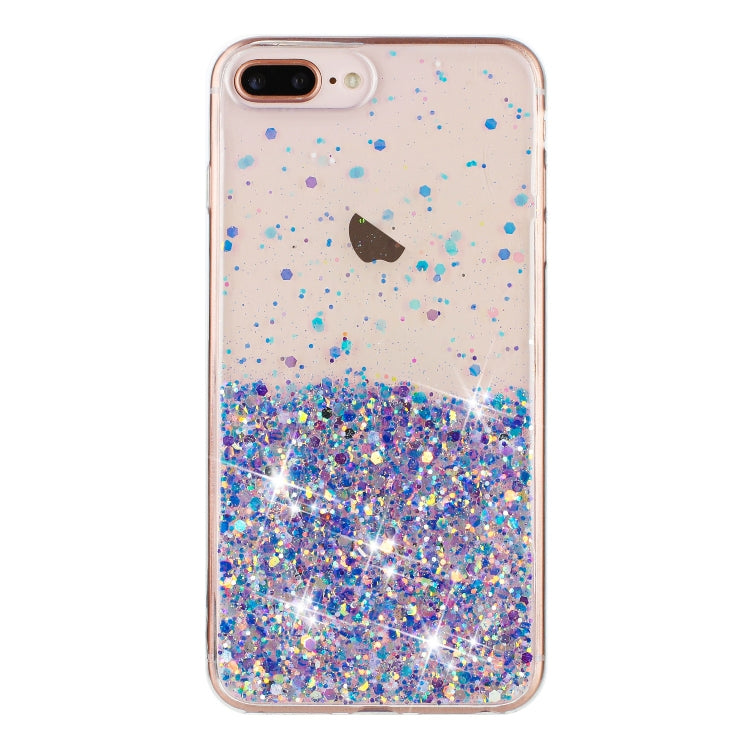 Funda para Teléfono TPU iPhone 8 Plus/7 Plus Polvo de Brillo Noctilucente Marco Transparente (Púrpura)