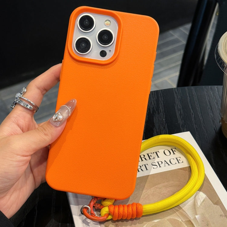 Funda de Teléfono TPU con Textura de Cuero para iPhone 12 Pro Max con Cordón (Naranja)