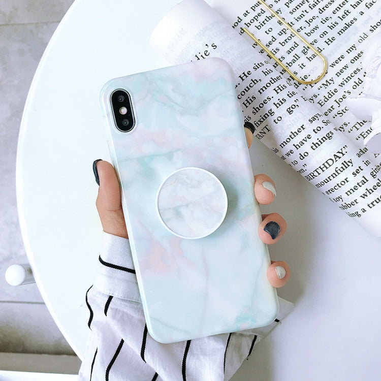 Funda para iPhone Xs Max Marble TPU Protección Anti-Drop con Soporte Plegable (Rosa Verde)
