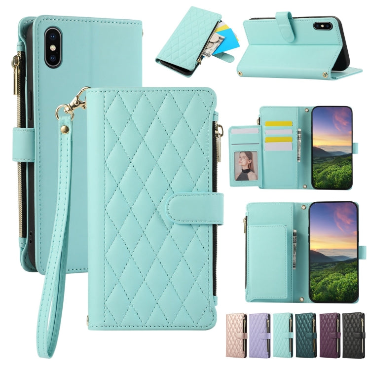 Funda Tipo Billetera Cuero con Cremallera en Rombo para iPhone X/Xs (Cian)