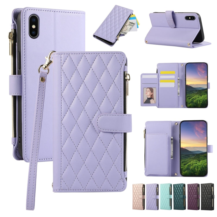 Funda Tipo Billetera Cuero con Cremallera Forma Rombo para iPhone Xr (Morado)