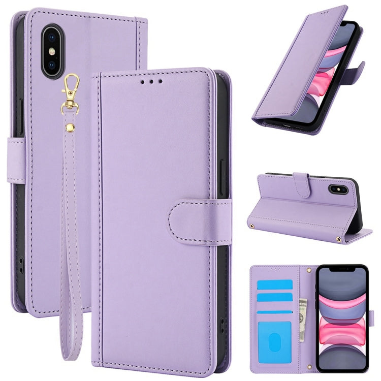 Funda de Cuero Skin Feel para iPhone X/Xs con Ranuras para Tarjetas y Doble Cordón (Morado)