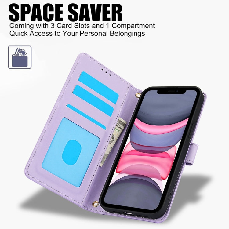 Funda de Cuero para iPhone 8 Plus/7 Plus Ranura Múltiples Tarjetas Cordón (Morado)
