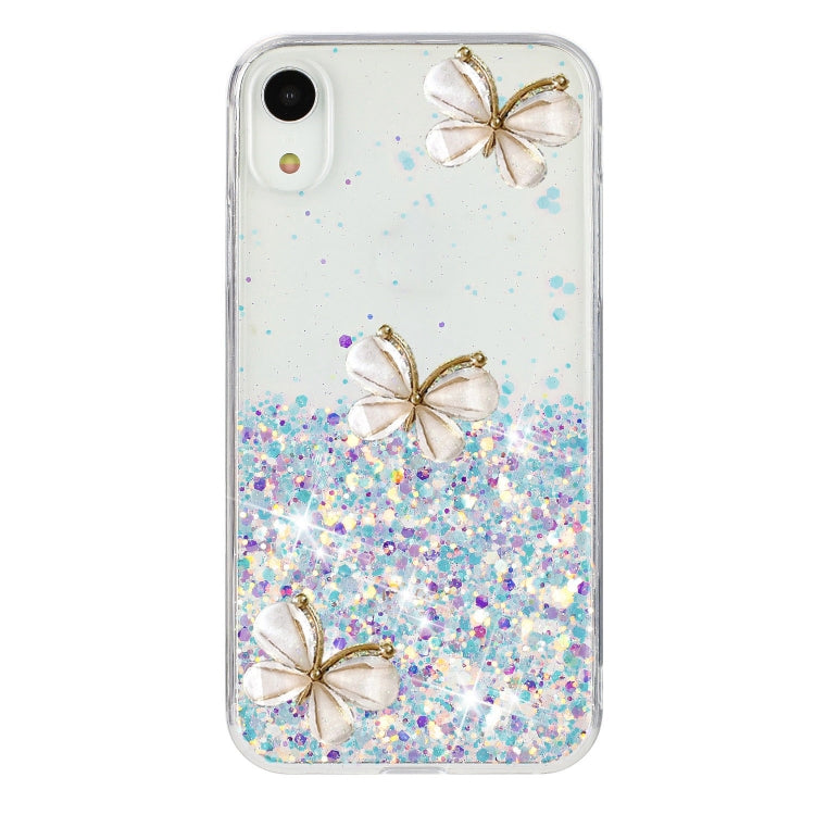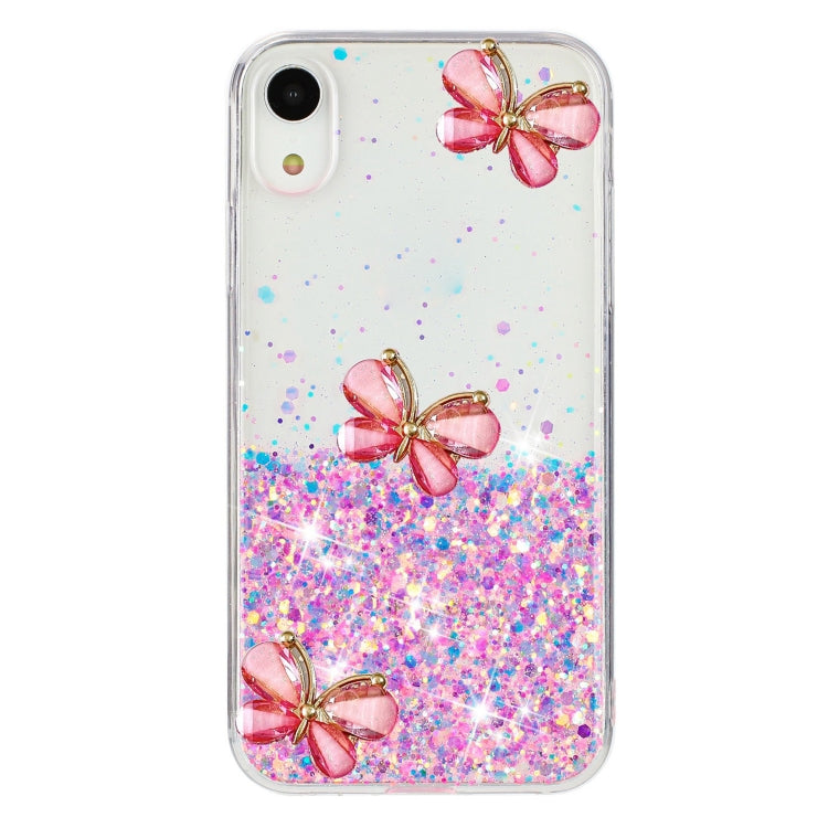 Funda TPU iPhone Xr Diseño Mariposa Purpurina Cielo Estrellado Luminoso (Rosa)