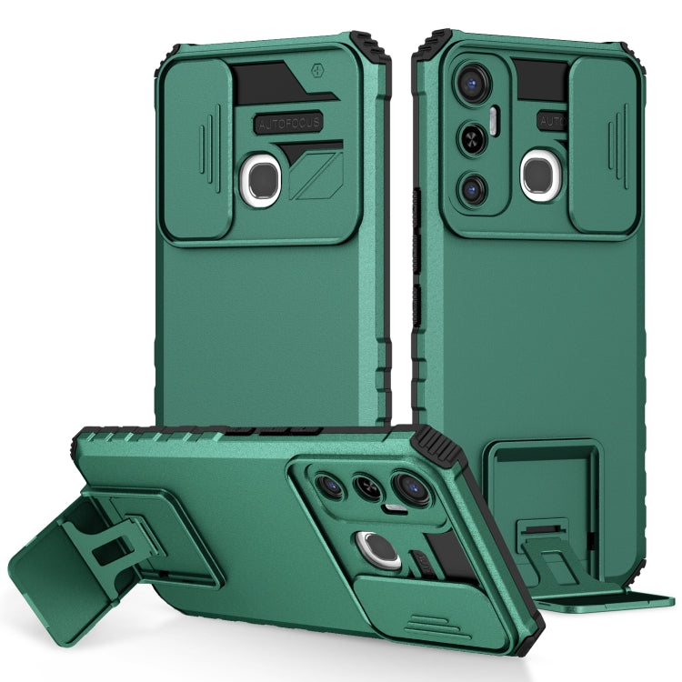 Funda para Infinix Hot 11 con Soporte Estereoscópico y Camshield Deslizante (Verde)