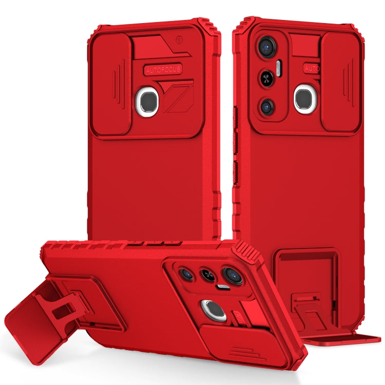 Funda para Infinix Hot 11 con Soporte Estereoscópico y Camshield Deslizante (Rojo)