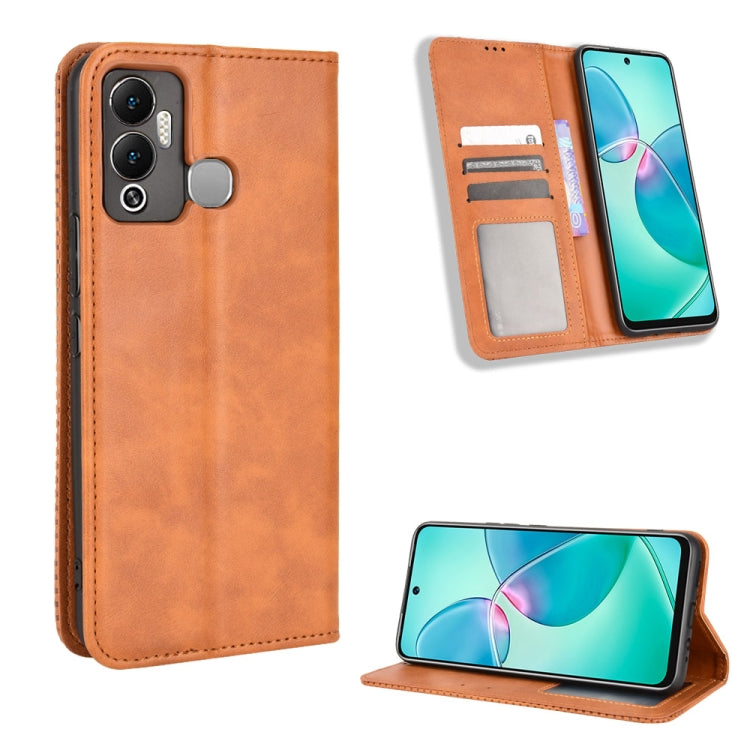 Funda de Cuero para Infinix Hot 12 Play con Textura Retro y Hebilla Magnética (Marrón)