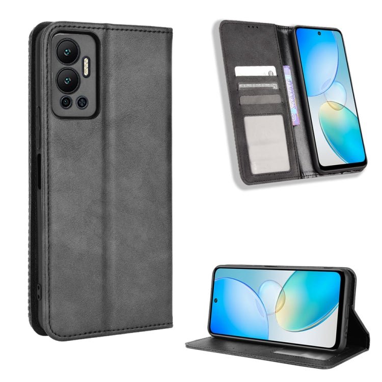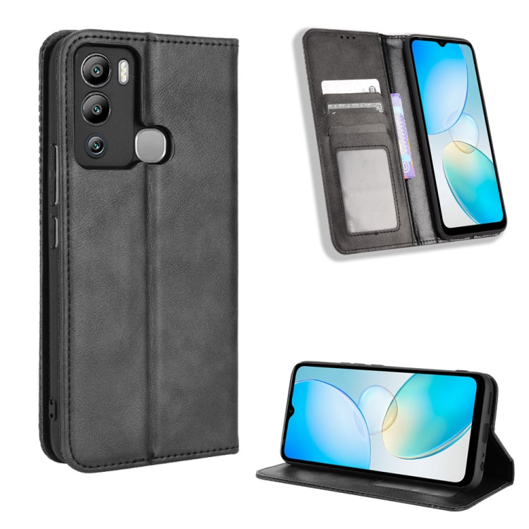 Funda de Cuero con Hebilla Magnética para Infinix Hot 12 Textura Retro (Negro)