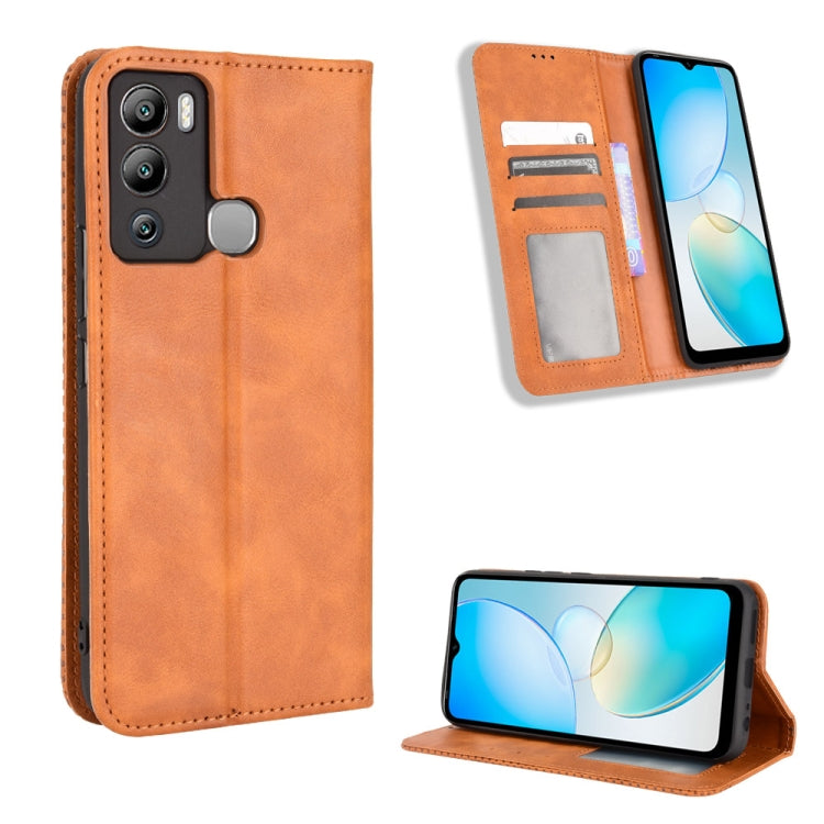 Funda de Cuero para Infinix Hot 12I con Hebilla Magnética y Textura Retro (Marrón)
