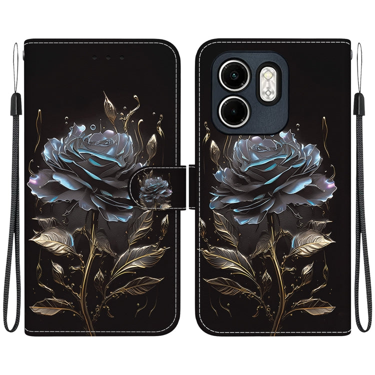Funda de Cuero con Dibujo de Colores y Textura de Cristal para Infinix Hot 50I Smart 9 (Rosa Negra)
