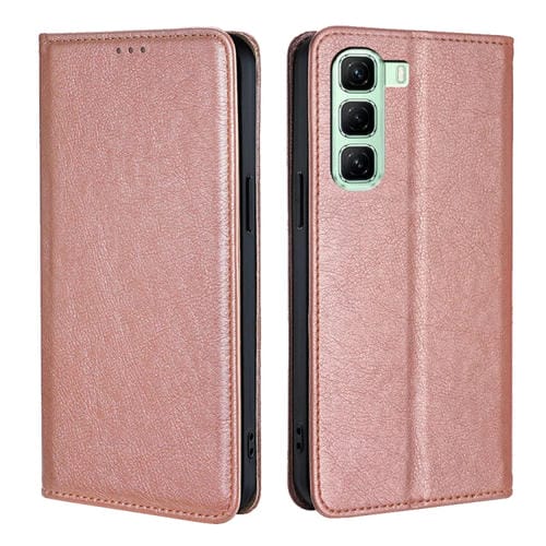 Funda de Cuero Magnética para Infinix Hot 50 4G (Marrón) Acabado Brillante
