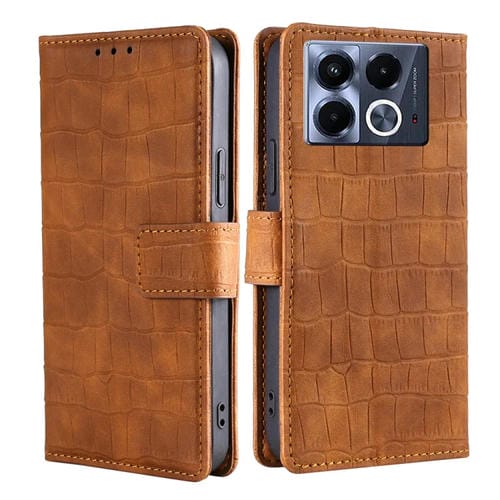 Funda de Piel con Cierre Magnético para Infinix Note 40 5G (Marrón) Diseño Cocodrilo