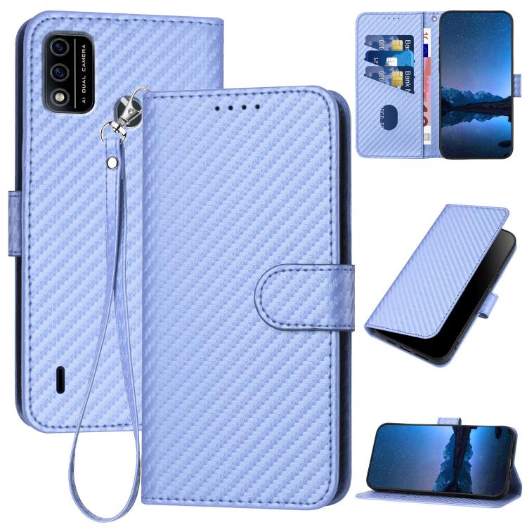 Funda de Cuero con Hebilla de Fibra de Carbono para Teléfono Itel A50 Yx0070 con Cordón (Morado Claro)