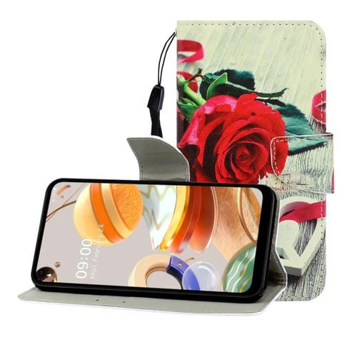 Funda de Cuero Abatible Horizontal para LG K61 con Soporte, Ranura para Tarjeta y Billetera (Magnolia)
