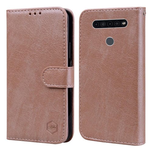 Funda para Teléfono LG K51 Skin Feeling Oil Leather Texture PU + TPU (Champán)
