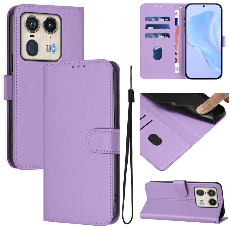 Funda de Cuero con Cordón para Motorola Edge 50 5G con Tacto de Piel (Morado Lavanda)