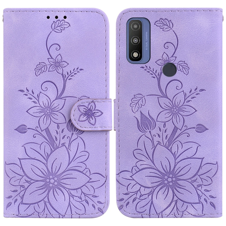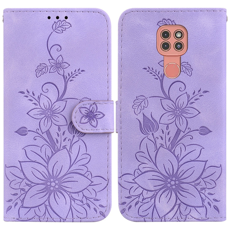 Funda de Cuero con Relieve Lily para Motorola Moto G9 Play / E7 Plus (Púrpura)