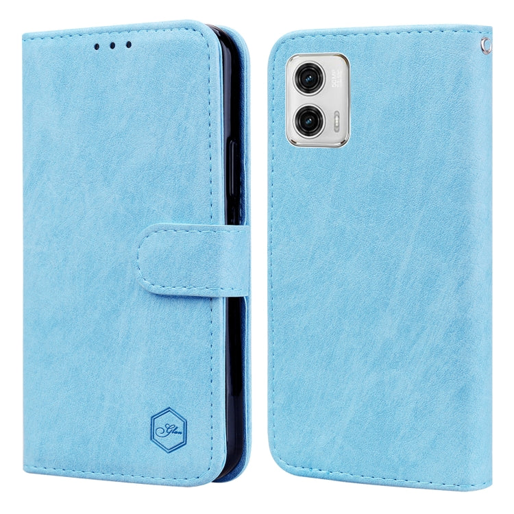 Funda para Motorola Moto G22 Sensación de Piel Textura de Cuero Aceitoso PU + TPU (Azul Claro)