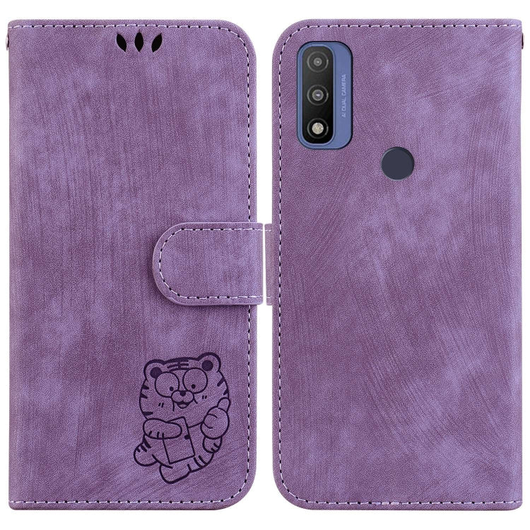 Funda de Cuero para Motorola Moto G60S Little Tiger con Relieve (Púrpura)