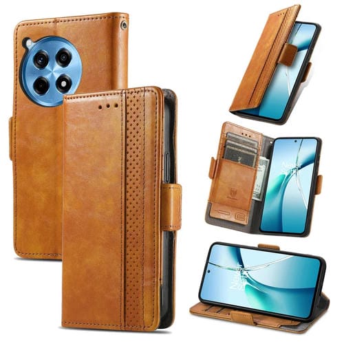 Funda de Cuero con Hebilla Magnética Doble para OnePlus Ace 3 Pro (Marrón)