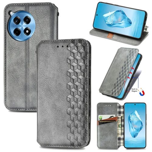 Funda de Cuero Magnética OnePlus Ace 3 Pro Diseño Cuadrícula Cúbica (Gris)