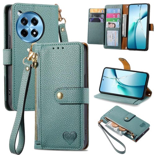 Funda de Cuero con Cordón y Cremallera Love para OnePlus Ace 3 Pro (Verde)