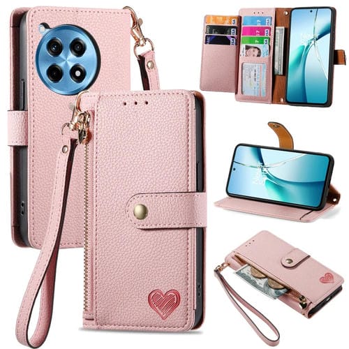 Funda de Cuero con Cordón y Cremallera Love para OnePlus Ace 3 Pro (Rosa)