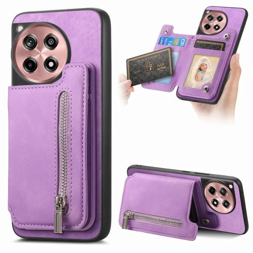 Funda para Teléfono OnePlus Ace 3 5G/12R 5G con Cremallera Magsafe Retro (Morado)