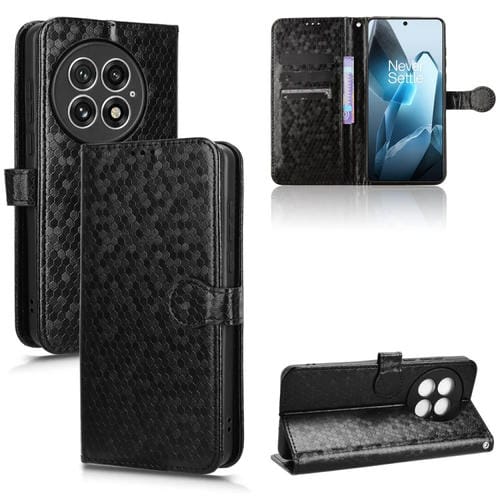 Funda de Cuero para OnePlus 13 5G con Textura de Puntos en Panal (Negra)