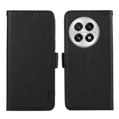 Funda de Cuero con Patrón de Lichi y Cierre Magnético Lateral para OnePlus 13 Abeel (Negro)