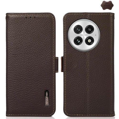 Funda para Teléfono Khazneh con Rfid Cuero Genuino Imán Lateral para OnePlus 13 (Marrón)