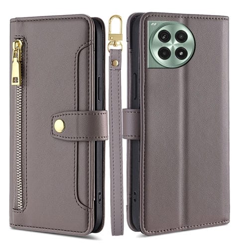 Funda de Cuero OnePlus Ace 3 Pro 5G con Cremallera y Textura de Oveja (Gris)
