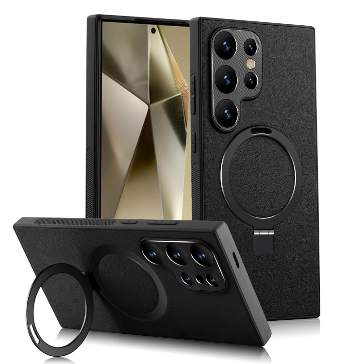 Soporte Giratorio Magsafe PC + Funda de Cuero para Samsung Galaxy S24 Ultra 5G (Negro)