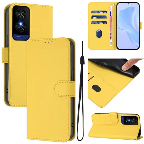 Funda de Cuero con Cordón para TCL 50 5G 50 Xe Nxtpaper 5G Textura Piel (Amarillo Limón)