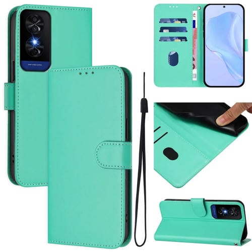 Funda de Piel Sintética con Cordón para Teléfono TCL 30Z T602Dl (Verde)
