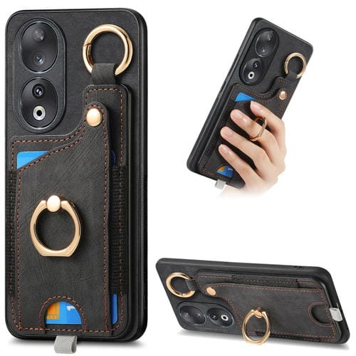 Estuche para Honor 90 con Billetera RFID, Múltiples Tarjetas y Anillo Retro (Negro)