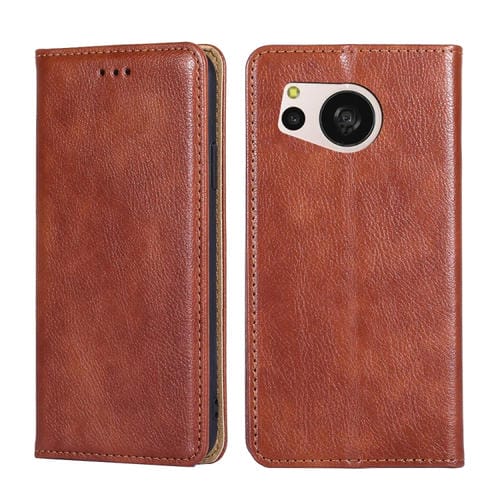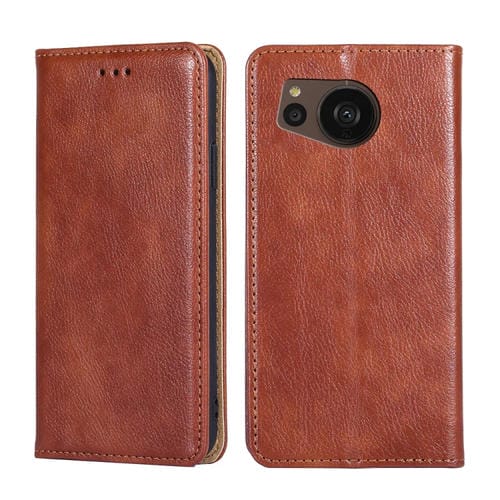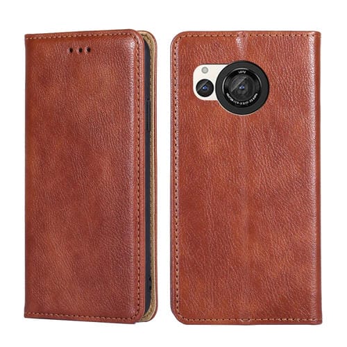 Estuche para Sharp Aquos Sense7 Plus de Cuero Magnético con Aceite Brillante (Marrón)
