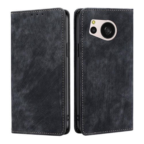 Estuche para Sharp Aquos Sense8 de Cuero Magnético con Cepillo Antirrobo RFID (Negro)
