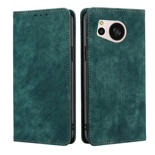 Estuche para Sharp Aquos Sense8 de Cuero Magnético con Cepillo Antirrobo RFID (Verde)