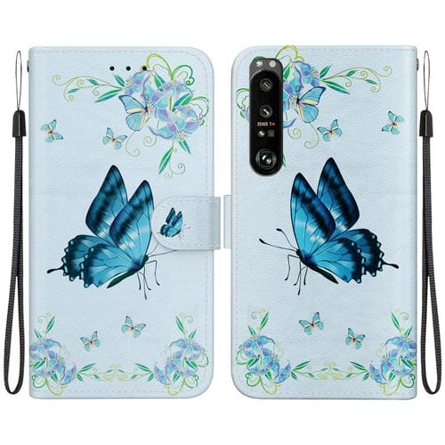 Estuche para Sony Xperia 1 III de Cuero con Dibujo Coloreado y Textura de Cristal (Azul)