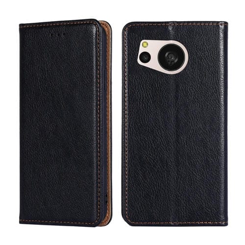 Estuche para Sharp Aquos Sense7 de Cuero Magnético Color Sólido con Aceite Brillante (Negro)