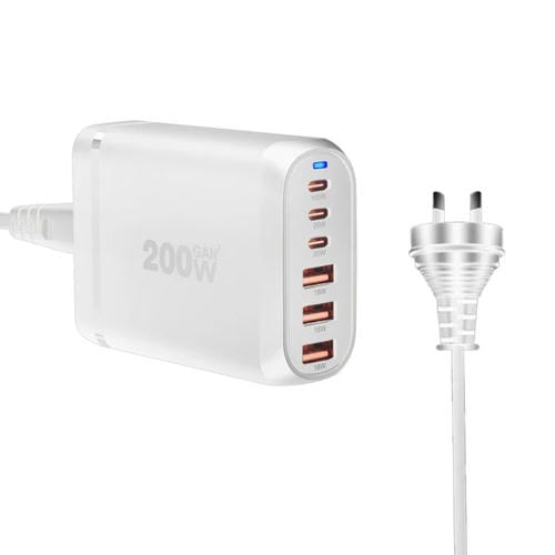 Adaptador Multipuerto Gan PD100W para Computadora Portátil Type-C x3 USB x3 (Blanco) Enchufe AU