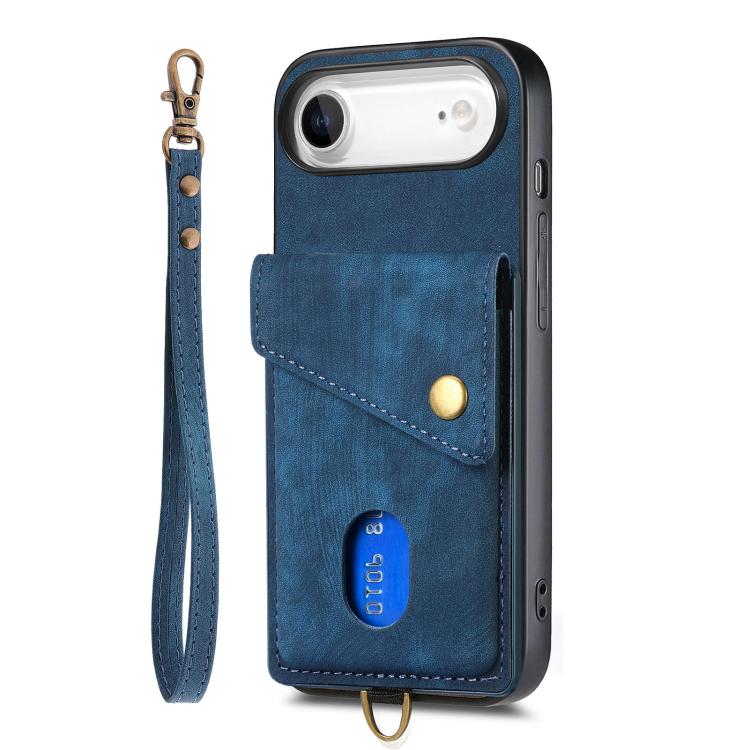 Funda de cuero plegable con correa para iPhone Air, estilo retro, tipo billetera (azul)